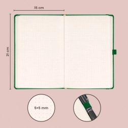 Carnet à points NOTIQUE Aprint, élégant, en vert, idéal pour les notes quotidiennes, la planification et les esquisses créatives. Il offre un quadrillage à points pour une écriture et un dessin précis, un format 15 × 21 cm facile à emporter et une surface adaptée au marquage à chaud du logo avec une texture subtile.