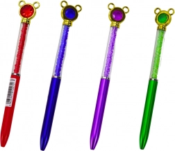 Stylo-bille avec souris et strass scintillants, recharge bleue 0,7 mm