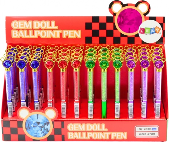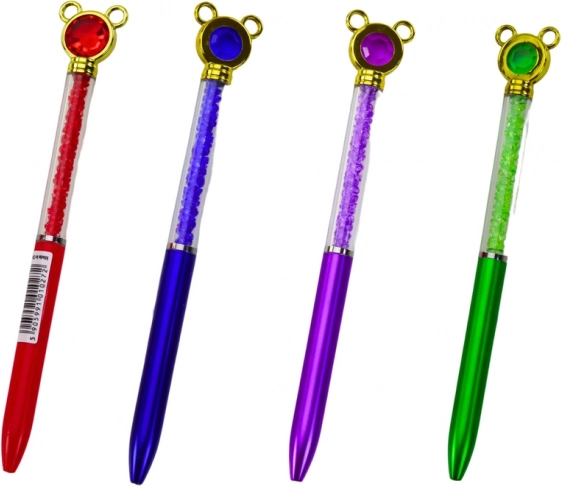 Stylo-bille élégant avec souris, strass scintillants et encre bleue 0,7 mm. Écriture fluide, plusieurs couleurs de corps, certifications CE/EN71. Idéal aussi comme cadeau.