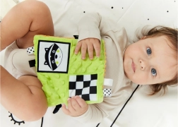 Des motifs noir et blanc marqués complétés par des couleurs vives aident le bébé à mieux focaliser et soutiennent la perception visuelle dès la naissance.