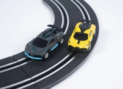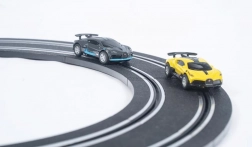 Vivez une atmosphère de course intense sur le circuit DRIVERO de 8,4 m. Grâce à l'alimentation par transformateur, vous profitez d'une puissance stable et d'une conduite fiable. Deux voitures BUGATTI sous licence sont incluses et la piste peut être assemblée en trois configurations différentes selon vos envies.