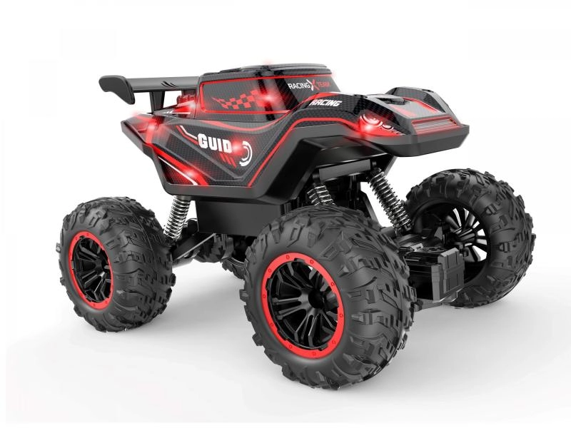 Amusante voiture RC pour petits pilotes, capable d’affronter le tout-terrain grâce à ses pneus oversize, sa suspension efficace et son contrôle 2,4 GHz stable. Profitez de jusqu’à 25 minutes de conduite, d’effets lumineux et d’une portée de la télécommande jusqu’à 20 m.