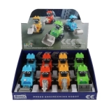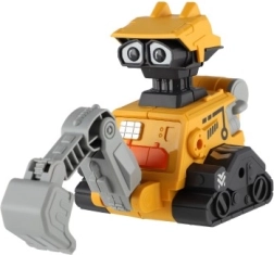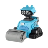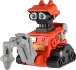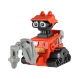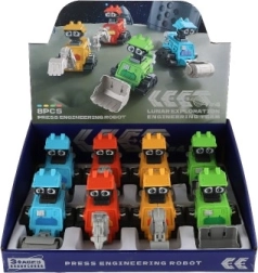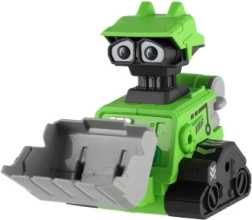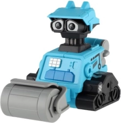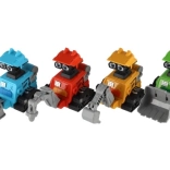 Les robots sont fabriqués en plastique résistant et existent en quatre variantes attrayantes inspirées des engins de chantier. Les dimensions compactes 8 × 10 × 14 cm tiennent bien en main et stimulent l’imagination ainsi que le développement de la motricité fine.
