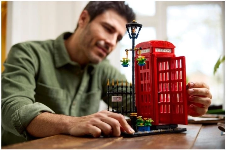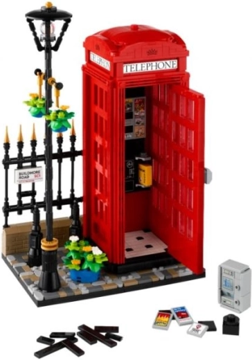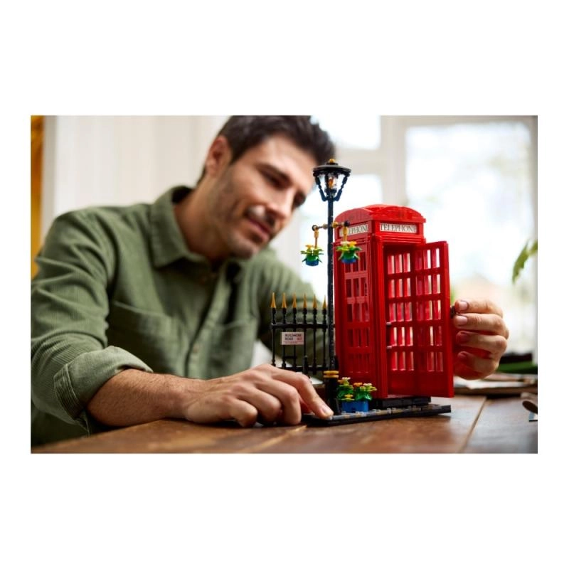 Recréez chez vous un morceau d’histoire britannique avec cette cabine téléphonique londonienne détaillée, remarquable par sa couleur rouge iconique, les panneaux transparents des portes et l’inscription TELEPHONE. La scène à construire comprend un trottoir pavé, un lampadaire orné de fleurs, une grille et une signalisation de rue – prête à être exposée sur une étagère, dans le salon ou au bureau.