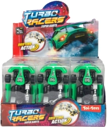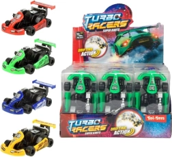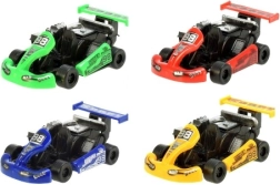 Petit karting en plastique de 9 cm de longueur, aux couleurs vives, parfait comme cadeau pour les petits coureurs. Design détaillé et couleurs vives le rendent idéal pour le divertissement et la décoration.
