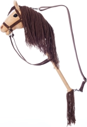Le jouet présente des détails réalistes du cheval, incluant une bride et une crinière brun foncé, pour une expérience de jeu authentique.