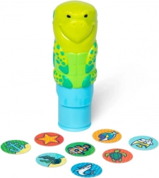 Le set comprend tout le nécessaire pour démarrer immédiatement l’expédition sous-marine. Le tampon avec la tortue souriante et les trois cents autocollants représentent avec vivacité les plantes marines, les coraux et les paysages sous-marins. Il inclut également un livre de 24 pages avec des fonds colorés illustrant des océans, des récifs coralliens, des plages et d’autres scènes aquatiques pour créer des histoires.
