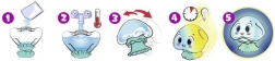 - Poudre + eau tiède, secouer dans la méduse