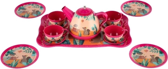 Le set comprend une théière, des tasses et des sous-tasses aux motifs ludiques d’animaux et de fleurs. Les enfants peuvent inviter des amis, des poupées ou des peluches et exercer leur communication, imagination et motricité fine. Convient aux enfants à partir de 3 ans.