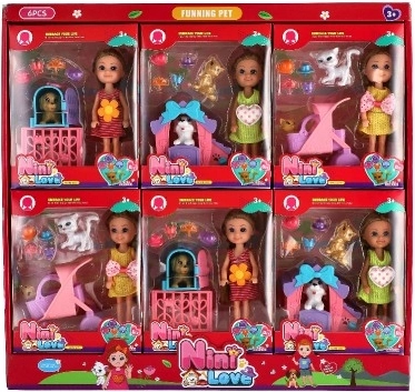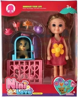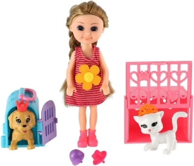 Poupée avec animal de compagnie et accessoires, 14 cm