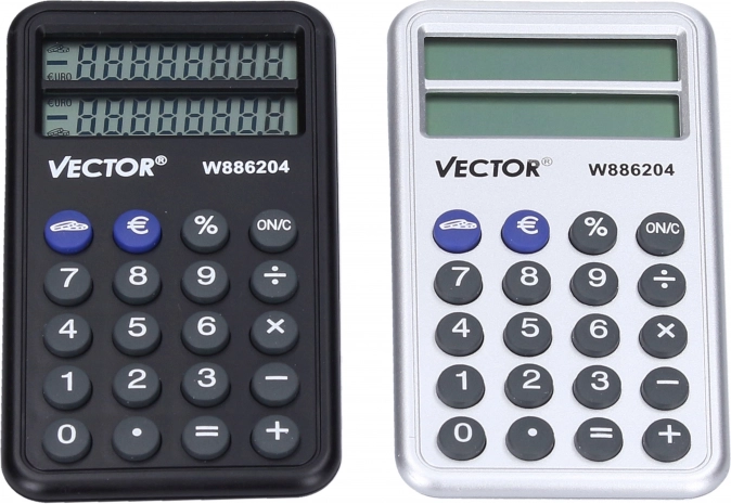 Calculatrice pratique au design élégant en noir et argent, idéale pour ceux qui ont besoin de convertir rapidement des devises. Elle comprend un manuel d'utilisation, ce qui la rend facile à utiliser immédiatement. Ce modèle :