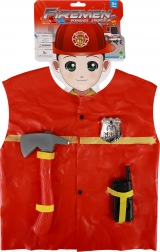 Le set inclut des accessoires indispensables – un talkie-walkie jouet pour communiquer avec l’équipe, une hache en plastique pour les interventions de sauvetage et un badge argenté pour se sentir dans la peau d’un vrai professionnel. Le costume est prévu pour une taille de 104–122 cm, convenant ainsi à la majorité des enfants de 3 à 7 ans.