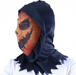 Le masque est conçu pour un port facile et confortable – la matière légère s’ajuste bien et couvre toute la tête ainsi que le cou. Excellent choix pour un costume « jack‑o’-lantern », fantôme ou farceur sombre.