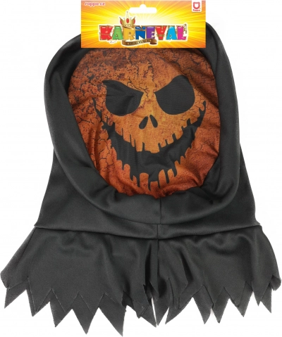 Effrayant masque textile style citrouille avec capuche, accessoire idéal pour Halloween, les carnavals et les fêtes à thème. Matière légère et couverture complète de la tête pour un port confortable et un effet terrifiant grâce au visage orange « jack‑o’-lantern » avec orbites sombres et sourire menaçant.