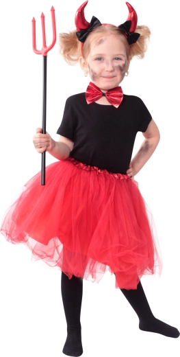 Offrez à votre petite coquette une transformation joyeuse en diablesse. Ce costume a été conçu pour être confortable, sûr et remarqué – grâce à sa jupe en tulle généreuse dans la couleur rouge typique et ses accessoires adorables, elle brillera à chaque fête.