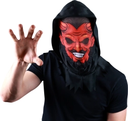 Masque textile intégral avec motif de diable effrayant — un indispensable pour toute collection de carnaval. Idéal également pour Halloween et les fêtes de Noël.