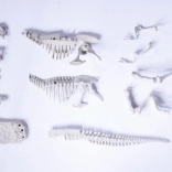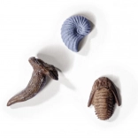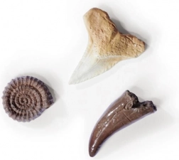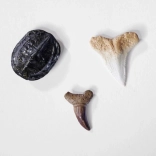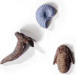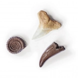 Les répliques fossilisées du kit représentent des formes biologiques historiques, y compris des dents et des fossiles spirals.