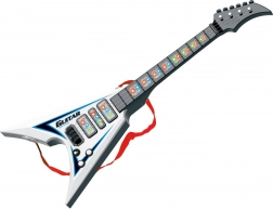 Cette guitare électrique est idéale pour les musiciens débutants et avancés grâce à ses dimensions de 22x5x56 cm. Elle dispose d'effets lumineux et sonores qui créent une expérience unique lors du jeu. Alimentation par trois piles 3xAA, non incluses, et utilisation facile grâce à l'interrupteur ON/OFF à côté des potentiomètres. Les deux potentiomètres servent à contrôler les effets.