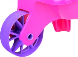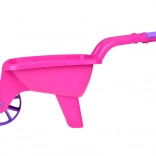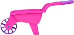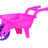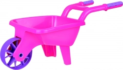 La brouette rose avec roue violette est conçue pour les petites mains – légère, stable et idéale pour transporter sable, jouets ou feuilles.