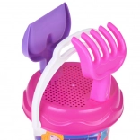 Le couvercle pratique perforé permet de tamiser le sable et de créer des constructions lisses. Le design coloré à motif de princesse ravira les enfants.