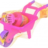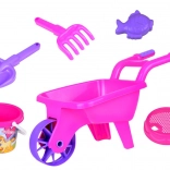 Un set de jardin pour enfants amusant et pratique avec brouette et de nombreux accessoires, qui favorise le jeu en plein air, le développement de la motricité et la créativité. Une brouette rose légère, un seau avec couvercle servant de tamis, une pelle, un râteau et un moule en forme de poisson offriront aux enfants des heures de jeu créatif au jardin comme dans le bac à sable. Le produit est fabriqué à partir de matériaux de qualité et sûrs, adapté aux enfants dès 3 ans.