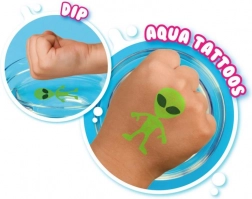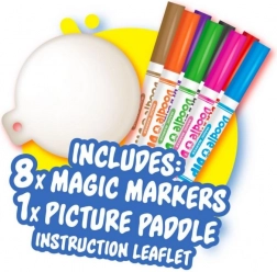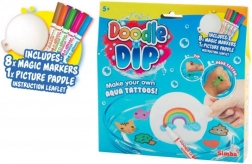 Plongez dans un monde de couleurs et de créativité avec notre set Doodle o Dip, qui vous permet de réaliser de superbes tatouages aquatiques. Ce set comprend huit feutres magiques de différentes couleurs et un tapis de dessin spécial. Dessinez votre motif sur le tapis, puis plongez-le dans l’eau et regardez l’image se détacher pour devenir partie intégrante de votre création – idéal pour la main ou une autre partie du corps.