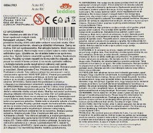 Le modèle est fabriqué en plastique de qualité, sans danger pour la santé, résistant aux chocs et à un jeu intensif. Le pack inclut une batterie rechargeable pour la voiture ainsi que 2× AA pour la télécommande, pour démarrer immédiatement après déballage.