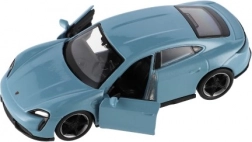 Modèle de voiture de luxe Porsche Taycan Turbo S fabriqué en métal avec des accessoires en plastique. Il dispose de portes ouvrantes et d'une fonction de recul. Un excellent choix pour les petits et grands collectionneurs !