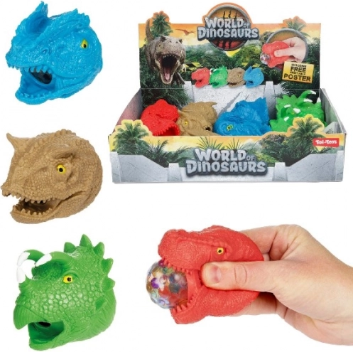 Tête de dinosaure anti-stress à presser 8 cm, 4 modèles, boîte de 12