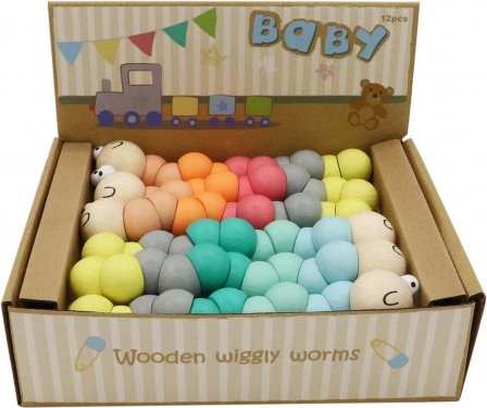 Chenille en bois 17 cm en deux couleurs. Un excellent outil de développement pour les enfants. Idéal pour chaque salle de jeux.