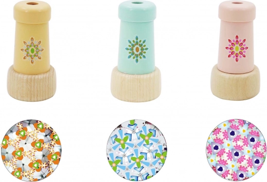 Profitez de la magie du monde en couleurs avec notre kaléidoscope en bois. Choisissez parmi les variantes bleue, jaune ou rose et découvrez des motifs fascinants.