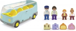 Un bus touristique robuste avec un intérieur ouvert et quatre sièges, idéal pour les petites mains et qui encourage le jeu autonome.