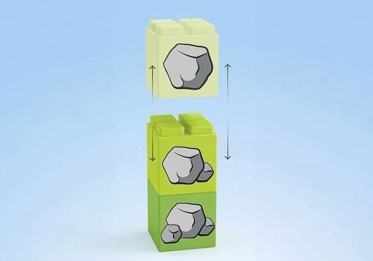 Inclus : une figurine et trois blocs empilables avec impression de pierres (1, 2 et 3), qui favorisent l’apprentissage et la construction créative.