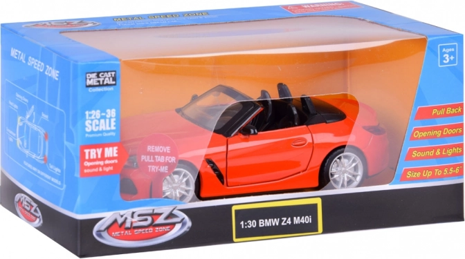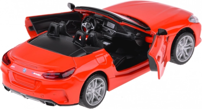 Ce cabriolet BMW Z4 M40i détaillé se distingue par une fabrication de qualité pour un rendu authentique, en jeu comme en exposition. La carrosserie en métal, les roues en caoutchouc et le châssis en plastique assurent solidité et longue durée de vie. À l’ouverture des portes, les sons de klaxon et d’alarme s’activent, accompagnés de lumières clignotantes à l’avant et à l’arrière. En appuyant le modèle contre la surface, vous déclenchez le son de démarrage et de fonctionnement du moteur, tandis que le tableau de bord s’illumine.
