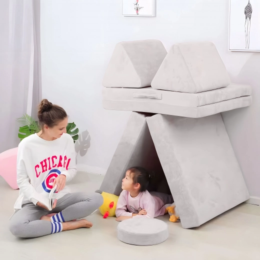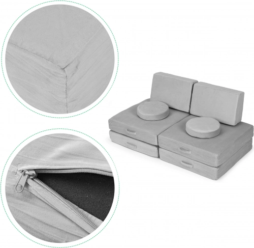 grand canapé modulable pliable pour enfants, 8 coussins moelleux – gris ECOTOYS