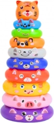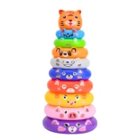 Au sommet de cette pyramide se trouve un petit tigre adorable, qui ajoute charme et incite au jeu. Jouer comprend l'empilage des anneaux du plus grand au plus petit, ce qui aide à développer la pensée logique et la coordination œil-main.