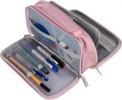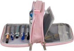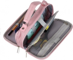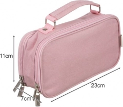 Pratique trousse scolaire à deux compartiments avec poignée, en couleur rose, offrant une organisation réfléchie du matériel et une grande durabilité pour un usage quotidien. Grâce aux deux sections à fermetures éclair doubles, le contenu est toujours bien sécurisé et rapidement accessible. Le polyester résistant, les multiples poches en maille, les passants élastiques pour instruments d’écriture et la poignée rivetée robuste en font un choix idéal pour les élèves, les étudiants et le bureau.