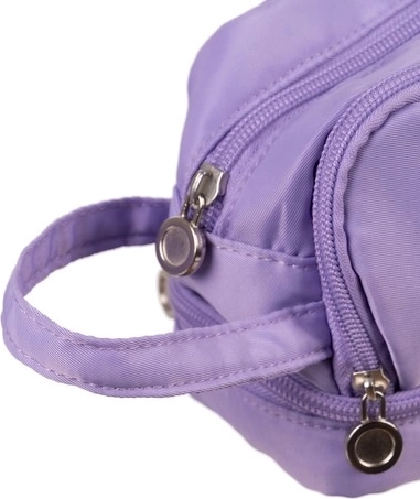 Trousse en nylon résistant, d’un violet éclatant, alliant esthétique et praticité. Facile à manipuler grâce à une poignée confortable.