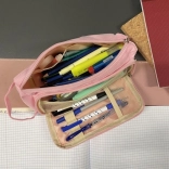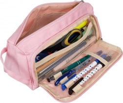 Cette trousse offre un compartiment principal pouvant être facilement divisé en sections pour une organisation efficace. L’espace principal est suffisamment grand pour ranger des instruments d’écriture tels que crayons, stylos, ciseaux et autres indispensables. À l’intérieur se trouvent deux poches, idéales pour les petits objets.