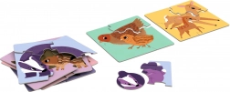 Des conseils et variantes de jeu sont inclus pour différents âges : de l’association simple des petits à leurs parents à l’assemblage selon les fonds colorés, jusqu’à des devinettes amusantes sans l’aide du recto. Le jeu développe le vocabulaire, la coordination œil–main et la fantaisie, et encourage la conversation sur la nature et la vie des animaux. Fabriqué en République tchèque.