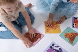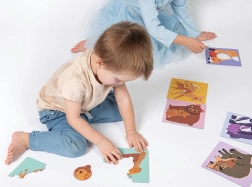 Les grandes pièces et la forme ingénieuse des encoches entraînent la motricité fine, la logique et la patience. Les enfants apprennent à associer correctement les bébés à leurs parents et à reconstituer l’ensemble.