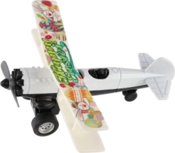 Un biplan coloré fera plaisir à chaque petit pilote. Grâce à la rétrofriction, il part vers l’avant une fois relâché et l’hélice avant se met à tourner pendant la course. Sa conception robuste en métal et plastique, son format compact de 10 × 11 cm et un assortiment de couleurs attrayantes en font un excellent jouet pour les enfants dès 3 ans.