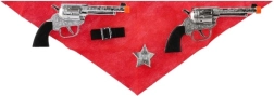 Deux pistolets avec étuis, badge de shérif, masque, foulard rouge et ceinture avec boucle – tout pour un costume de cow-boy parfait et un jeu réaliste.