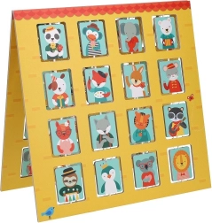 Le matériel de jeu est conçu avec un souci de durabilité : papier certifié FSC, impression avec encres végétales et conception sans plastiques. Le plateau recto‑verso avec fenêtres pivotantes offre deux variantes de jeu et encore plus de plaisir. Il suffit de choisir l’ami animal secret et de poser des questions futées – le premier qui devine a gagné !