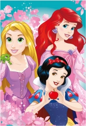 Blanche-Neige, Ariel et Raiponce sur une même image colorée motivent les enfants à assembler et stimulent leur imagination.