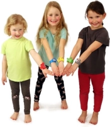 - Bracelet slap en silicone confortable – enfilage rapide, maintien sûr, taille adaptée à la plupart des poignets d’enfants.
