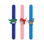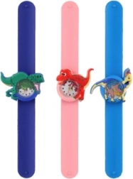 Adorables montres pour enfants avec motif dinosaure et bracelet auto-enroulant de type slap, assurant un port confortable et une mise au poignet facile. Grâce aux aiguilles minute et heure différenciées par la couleur, les enfants apprennent rapidement à lire l’heure. La montre possède un bracelet en silicone souple et est prête à l’emploi grâce à la pile LR626 fournie.