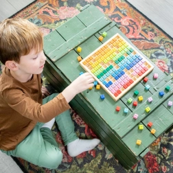 Ce tableau de multiplication en bois est un excellent outil pour développer la logique et la motricité fine. Les cubes colorés avec des exemples motivent les enfants à explorer et à apprendre par le jeu, tandis que la vérification immédiate des résultats renforce l’autonomie et la confiance en soi.