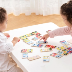Les dominos en bois sont un jeu ludique et éducatif qui offre d’innombrables possibilités d’apprentissage pour les tout-petits. Le set comprend 28 pièces recto-verso avec des illustrations de moyens de transport d’un côté et des points de l’autre. C’est un excellent moyen pour les enfants d’améliorer de façon amusante leurs compétences en résolution de problèmes et leur logique.