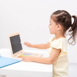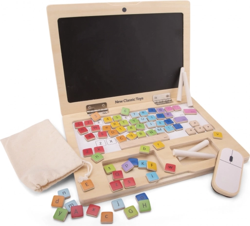 Laissez votre enfant découvrir le monde des lettres et des chiffres avec cet ordinateur portable en bois qui ne nécessite ni piles ni chargeurs. Toutes les lettres, chiffres et touches sont magnétiques, ce qui permet de les fixer facilement sur la partie inférieure du laptop.